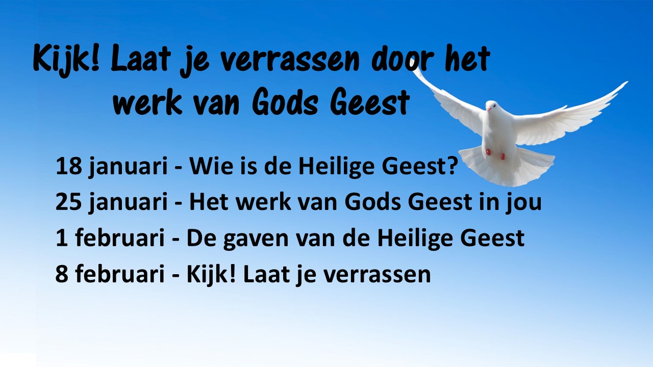 Kort moment koffie + gesprek: Hoe zie of ervaar jij de heilige Geest? Wat aan de preek of dienst sprak jou aan en/of heeft jouw beeld veranderd?